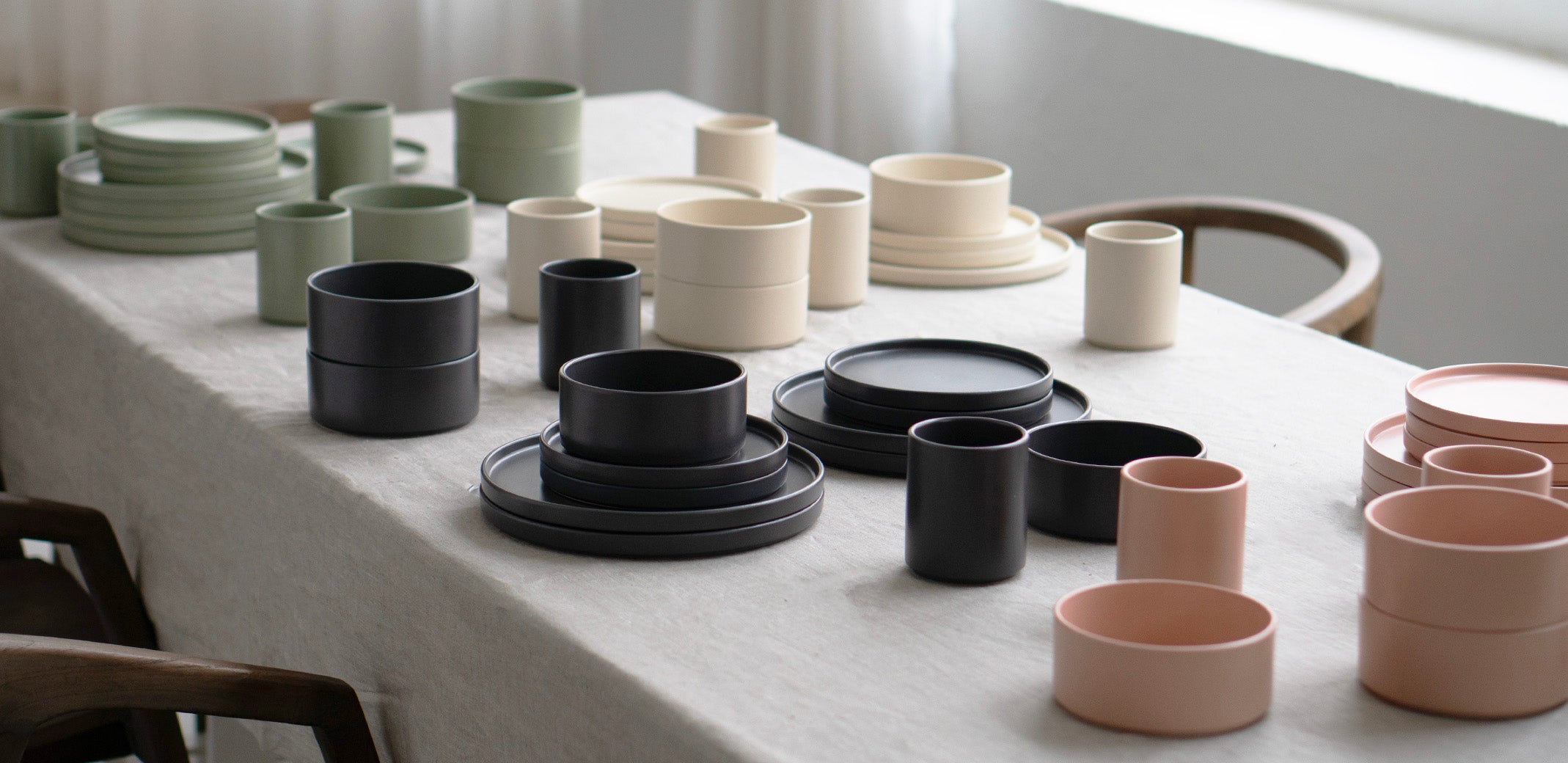 The goal of this collection was to bring the perfect combination of modern design and traditional artisanal craftsmanship. Our shapes and colours are the result of countless reiterations and refinements with the help of our partners in Portugal. With the modern aesthetic in mind, versatility and minimalism were the two major themes.