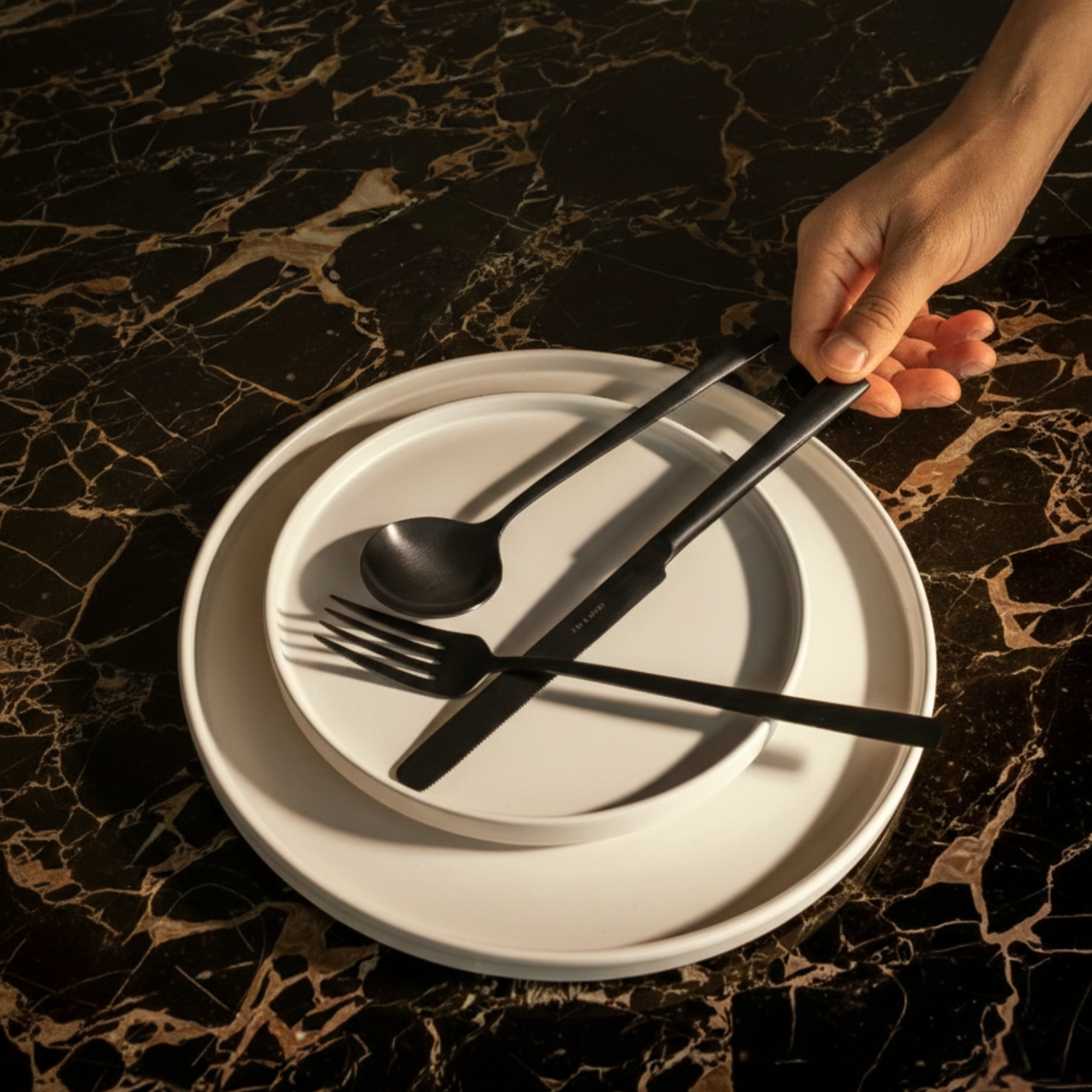 Our cutlery collection is crafted in family owned factory in a region of Northern Portugal known for generations of metalworking. It's a tradition deeply embedded in the local culture and treasured expertise is passed down the lineage. Nothing goes to waste during production as metal scraps are recycled into new sets. Each piece is carefully hand finished, checked for imperfections, and packed into our 100% recyclable cutlery box.